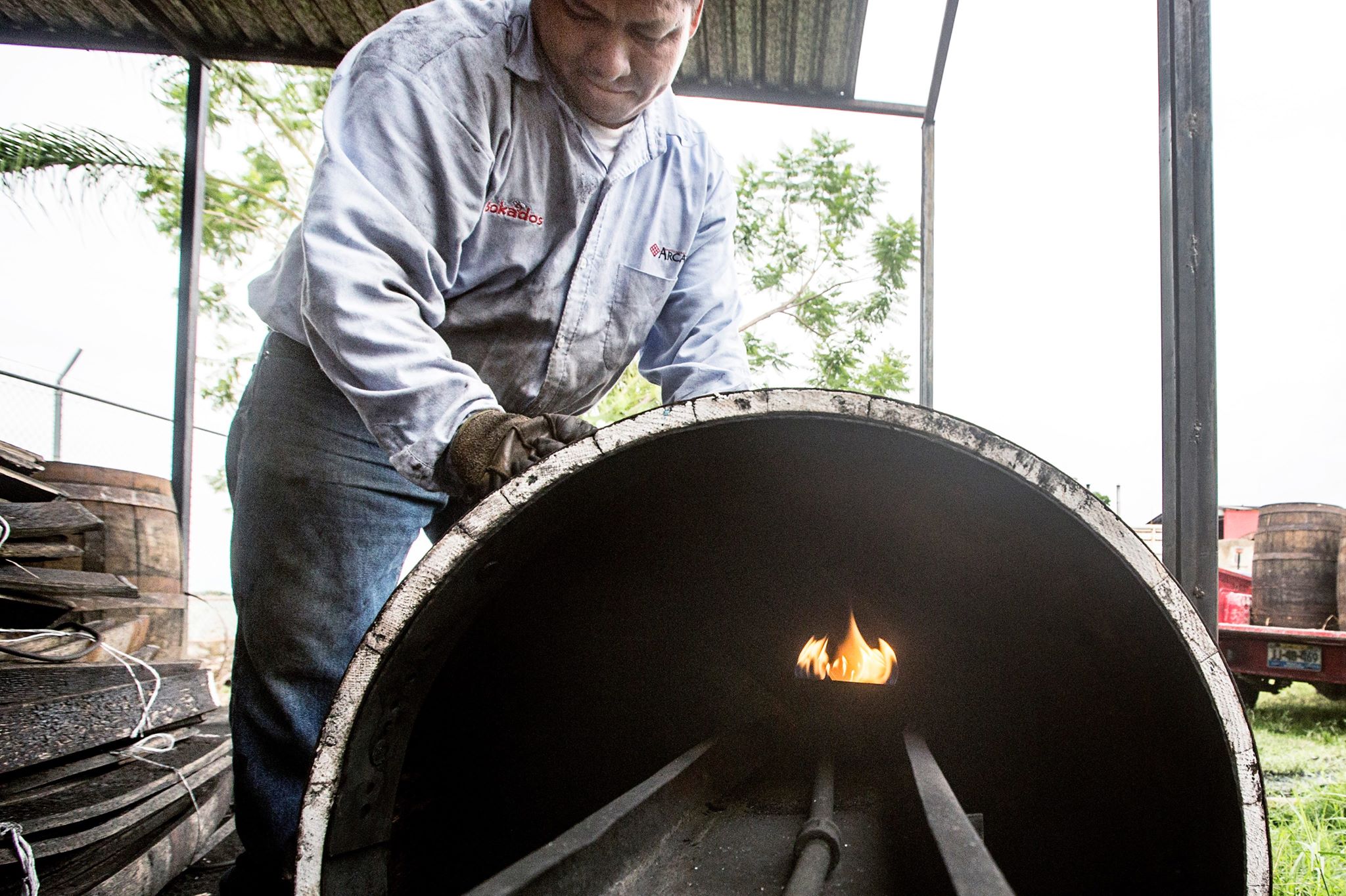 PRODUCTION- Azuñia Reposado is made with only estate grown USDA-certified organic agaves, grown on dedicated fields of the Tequila valley. They harvest only hand selected agaves at about 31 brix, and use only 100% 'valley' agave from Amatitan, in relationship with the Partida and Rivera families. They also cut out the cogollo from the male plants, (SEE ABOVE) getting rid of some bitterness. Asher told me "some distilleries actually just load whole agaves into an oven with a tractor, but our guys cut the agaves in half, so they cook evenly in the hornos, and we take the time to cut out the cogollos. Clay/brick traditional hornos are used for hydrolysis, and are steam roasted for 36 hours, followed by the cooked agave being crushed in pressing mills to extract the juice. They use this roller mill to do a double juice press extraction, so the agave fibers may reabsorb much of the juice before its squeezed out again. Fermentation takes place using 100% naturally occurring organic wild-borne yeast, using no commercial or proprietary yeast or any accelerants to jump start the fermentation. This open-air SS fermentation process, takes about 5-7 days. No bagasso is added, and they compost all the bagasso. The double distillation is done in all stainless steel pot stills, cutting and discarding about 10% of the heads and tails in the second distillation. The final distillation comes off at 46-47% before they cut to 40% abv. All the water used is an on-site well water source, from Salvador Rivera's property, that is naturally filtered through volcanic rock, and considered some of the most pristine water in the region. Charcoal filtration is done, and this Reposado is rested in used Jack Daniels American white oak barrels for an average of 8 months. They re-char periodically to a 3-4 toast level- (SEE BELOW), and the Reposado and Anejos are a blend of the other barrels, to match a specific flavor profile, but no flavor or color additives are ever used. Kailee Asher said exactly what I was hoping she'd say..."some batches of reposado may be lighter or darker than the last, and the distillery believes that matching a flavor is much more important than matching a color." This is exactly what we want, and what I have been preaching for years. Always buy from brands like this, that do not use additives, and that includes colorings, and I don't care if 1% is allowed. Some brands add caramel coloring here, calling this the rectification stage, so all past and future batches always match in color. Who cares?..... that is artificial coloring, and we don't need any additives.