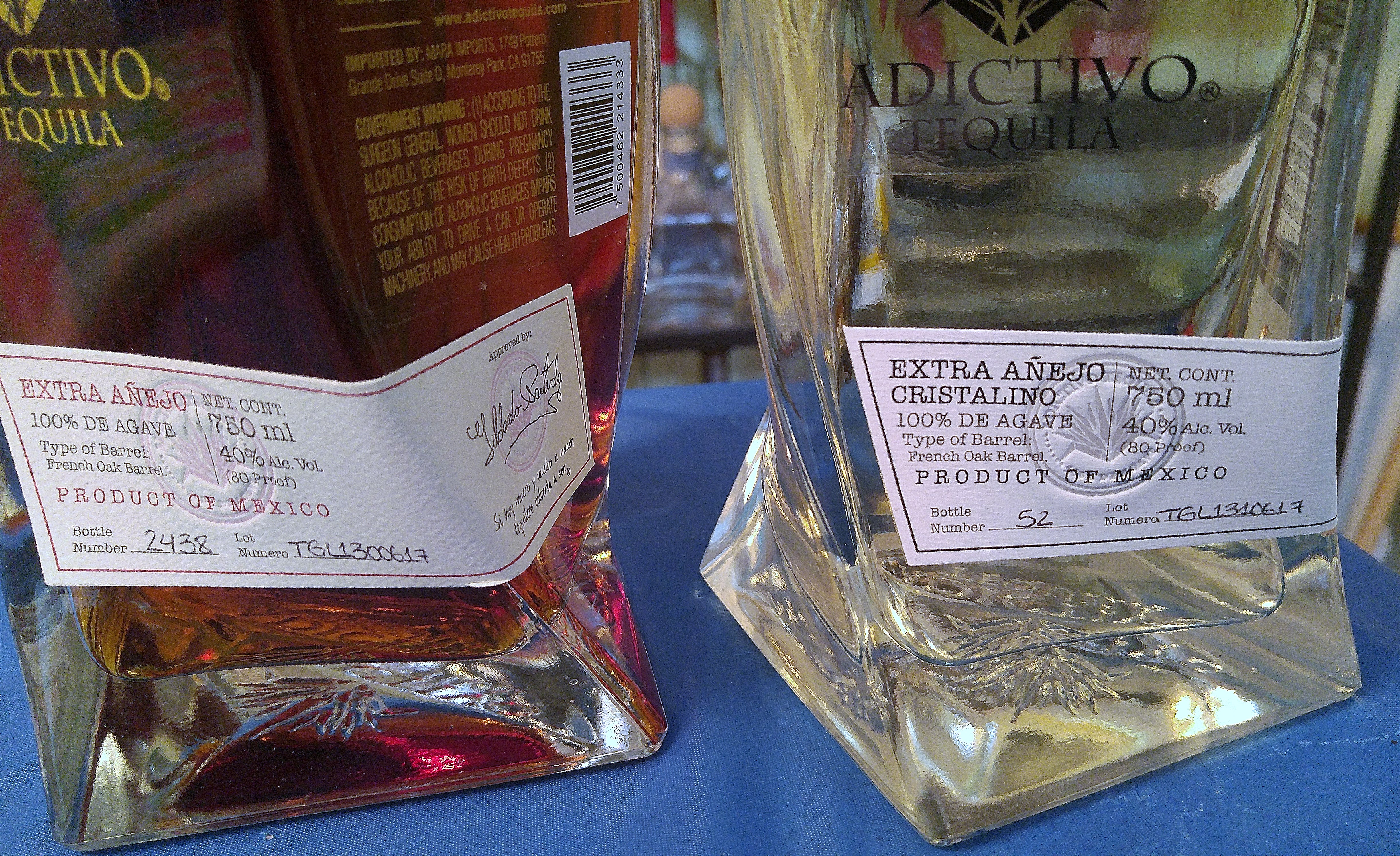 There is also a Cristalino Claro (clear) Extra Anejo which are somehow becoming popular. I am not a fan of Claros, as they usually filter so much, that it loses any agave presence and becomes bland, while losing it's color and minimizing the wood flavors, it often imparts. Some other brands that are made here at the Tequilas Gonzalez Lara, S.A. de C.V. distillery that I like, are Corazon Maya, Manana, Realeza Mexicana and Tequila Mexita's. Adictivo Tequila can be purchased at ZEE Tequila's Old Town Superstore online- http://www.oldtowntequila.com/search.php?search_query=adictivo, as well as other places.