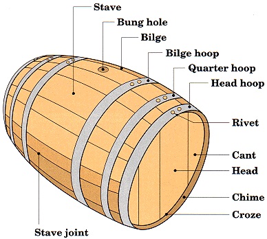 American White Oak barrel- (ABOVE) as seen on the Stay Adventurous website. A barrel maker is called a 'Cooper'.