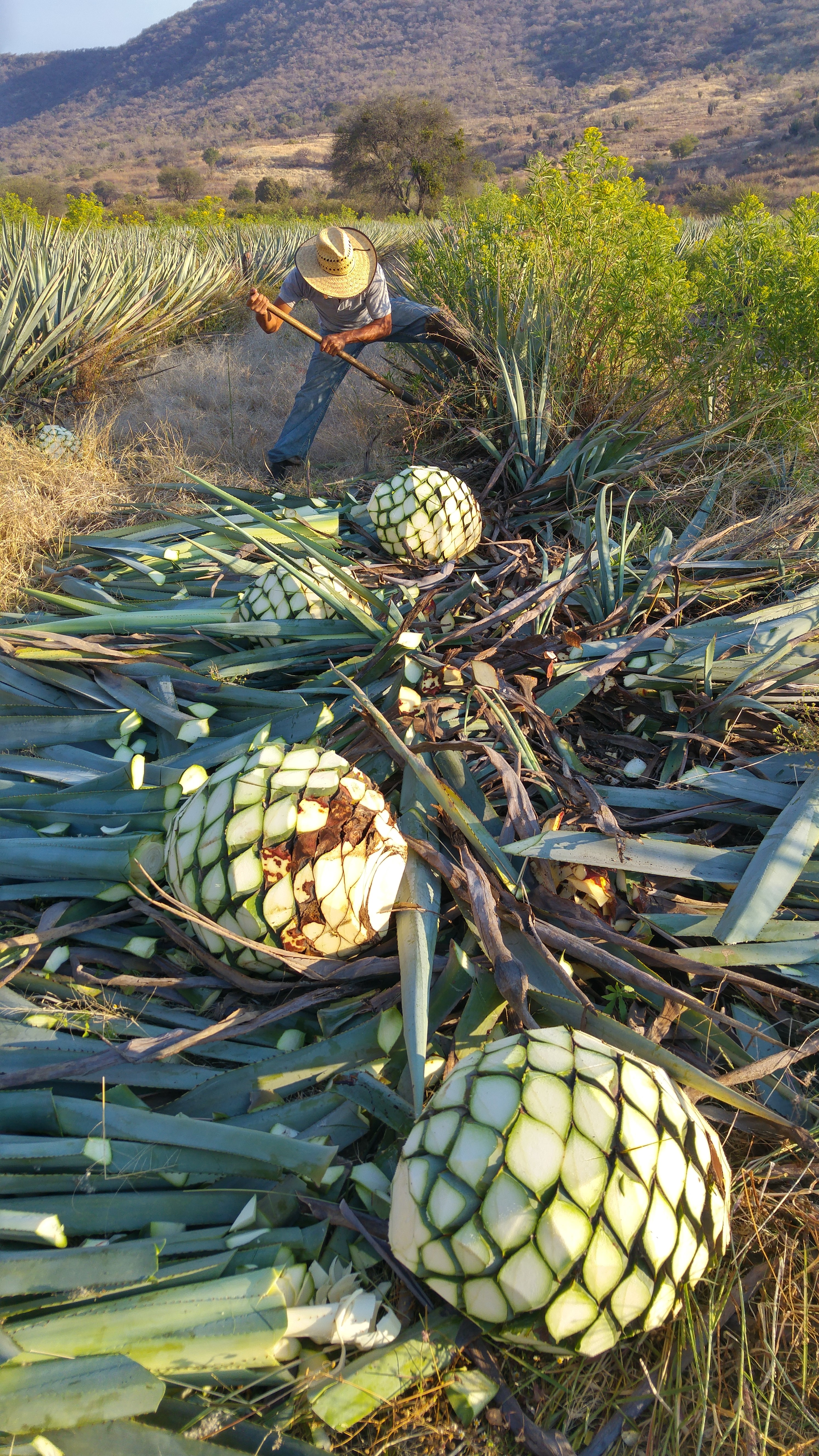 Sophie always took notes in the field, and years ago while testing and scraping for yeast samples to experiment with, she noticed in the highlands a small type agave known as a 'criollo'. They were smaller in size than normal blue weber agave, even when fully mature. Criollos are usually mixed in with regular blue weber agaves, and after seeing a harvest of mixed agaves one day, Decobecq realized that the smaller Criollo agaves had a distinctive aroma, and were sticky to the touch, indicating an abundance of sugars. When freshly harvested, this little blue agave smells intensely fruity and spicy, reminiscent of the complex flavors that it will acquire after cooking, fermentation & double distillation in a small still. All of this was written in her notebook, and a lot of this was forgotten until her son Abel was born. When she went through her notebook, she decided to create a tequila from only these special, small and unique agaves, to honor him. I asked her about specifics on these criollo's, and she explained, "these blue agave 'Criollo' plants are usually found in the highlands, close to hills with small farmers, and even if they have a small size, these plants have all that we like for Calle 23- healthy plants, high level of sugars and a great smell. We have always used some of these Blue Agave ‘Criollo’ in our Calle 23 production, when we can find some, which is not so common." Sophie said "yes these were very mature, small size agaves, with high sugar level, but more than anything... a smell (even at the raw stage) that was intense and complex". She went on to explain that for this limited edition, her goal was to simply find enough mature Blue Agave 'Criollo' to do a sole production. Decobecq told me these 'criollo' have an average brix level of 38.... and that's SWEET!! but she also said "brix level is not the unique criteria, as it is relative. An agave plant at the end of the dry season will have a high brix level, same as an agave plant after the rainy season will have a much lower brix, but a high brix level is amazing to use for production." She explained to me, that you can obtain fantastic tequilas during or after the rainy season, it is just a matter of adjusting cooking & milling parameters, but most important to her is the maturity of the plant, and that the agave she used were harvested at a perfect point of ripeness.