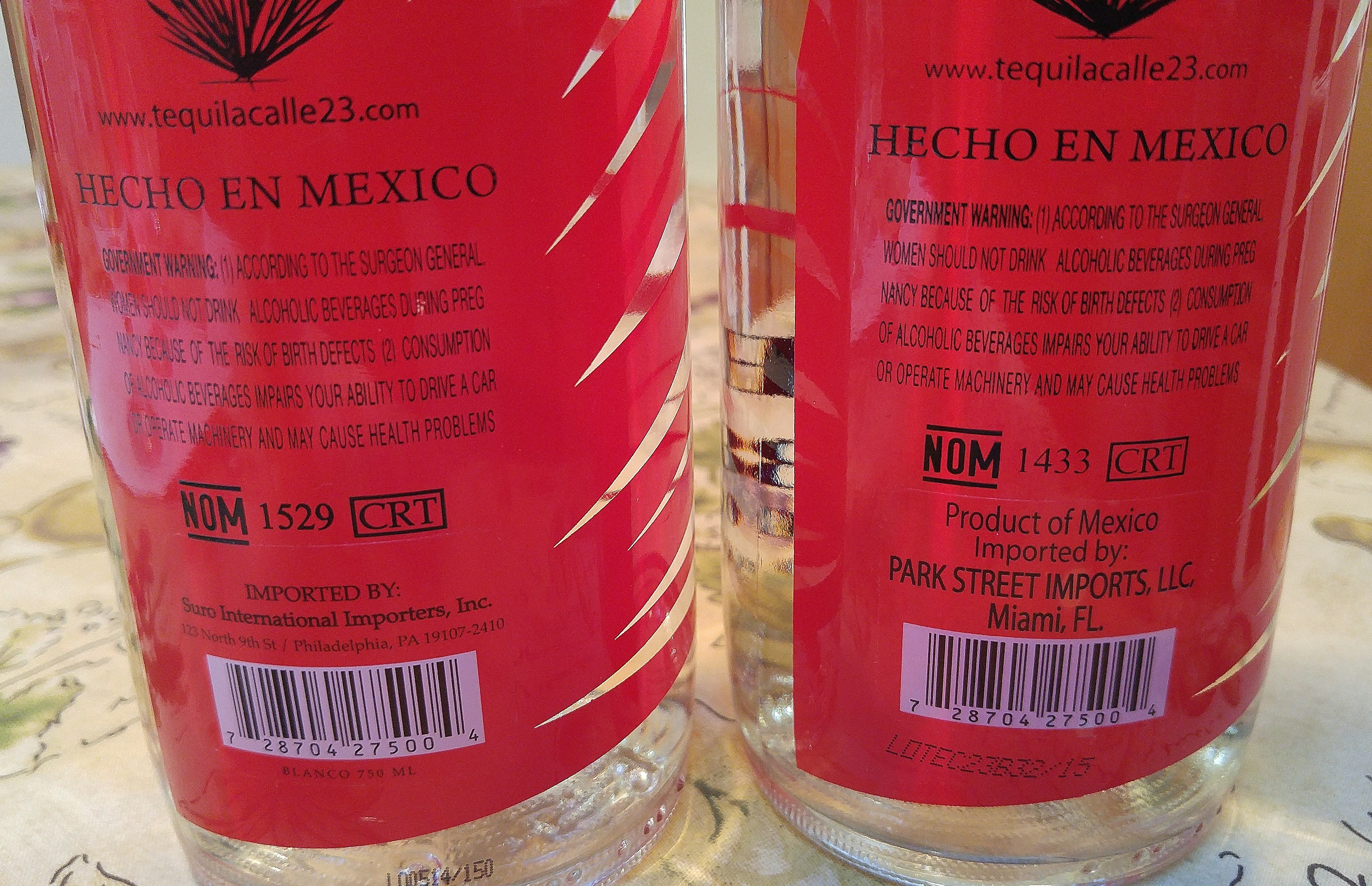 Most brands have a lot number printed on the bottle. Some are not easy to locate or read**, but they are usually there. Look all the way at the bottom here, on the glass of NOM 1529 on the left, and on NOM 1433 just under the barcode.** Many of the larger volume brands are more like 'cookie cutter' in taste profile, so it's not so necessary to compare lots, as they will be the same, set by a computer. The smaller artisanal handmade brands, can vary more with different 'runs or batches', and it's interesting to see the slight differences.