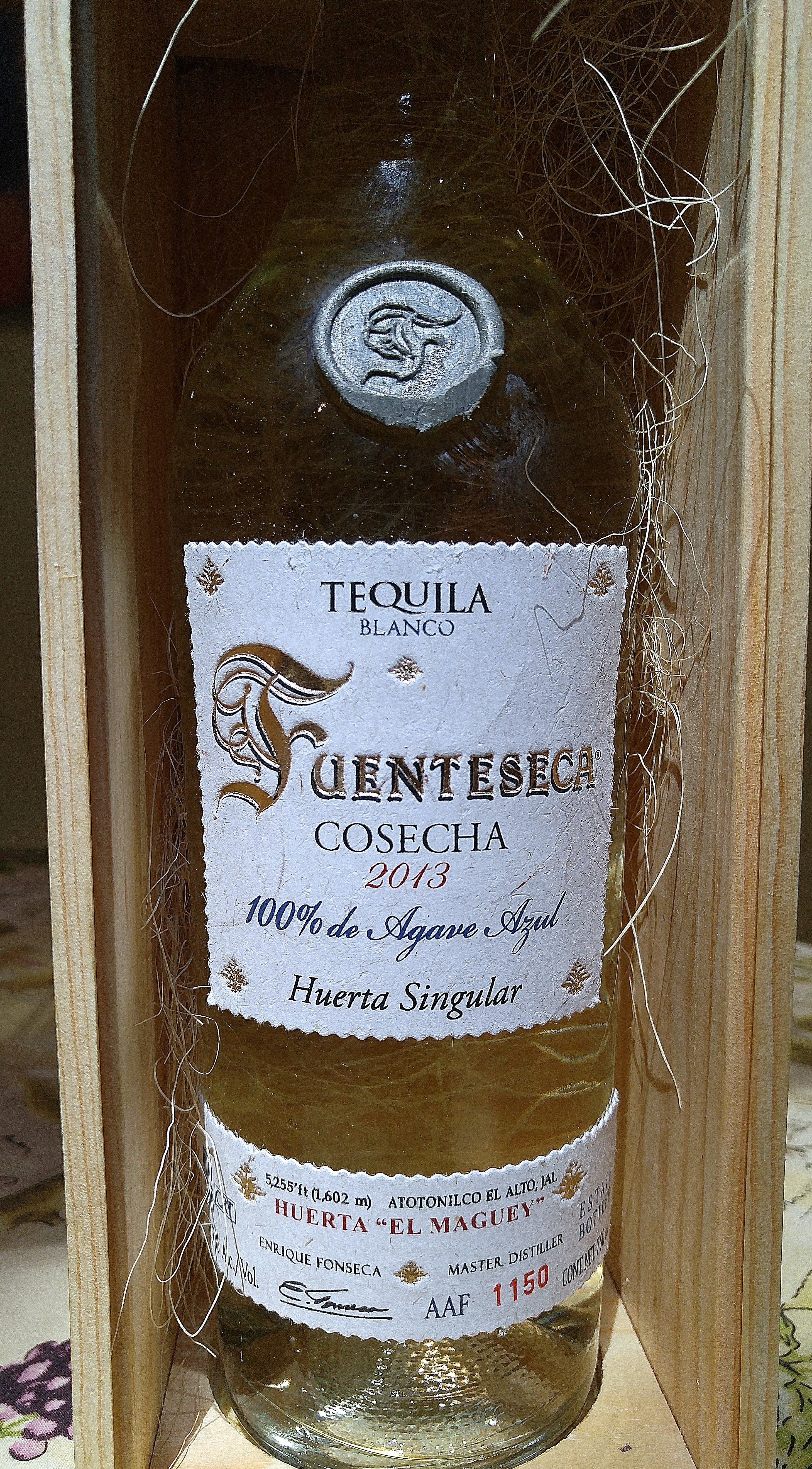 2013 Fuenteseca Huerta Singular Cosecha is a top quality connoisseurs blanco tequila, made at Distillery Tequileña- NOM 1146 in the El Valle (lowlands) of Jalisco. Made from top quality highland (Los Altos) agaves, 'Cosecha' means 'harvest'. The funny thing is, it's also perfect for a beginner to blanco, who believes blanco tequila to be too harsh, sharp or rough, and for them to compare this to other blancos. The balance and smoothness here is remarkable, especially for this over proofed tequila (91.4 proof). This Blanco will spoil both groups, as it's a limited edition tequila of very ripe agaves, grown in a single field, harvested and then rested for 3 years in stainless steel vats since late 2013. Each bottle is numbered and signed by Enrique Fonseca, the Owner & Master Distiller and comes in a beautiful wooden box presentation. There may be something to letting the tequila 'settle down' in neutral vessels, letting all the elements integrate. This is unique, smooth, unbelievably balanced, and you won't be able to get enough of it, and if you don't hurry... you won't have to worry about that. Only 8,000 bottles were made for the US, with 9,999 bottles made worldwide, and although the price is not cheap at $80-90, when you consider the extra expenses incurred for this uniqueness.... it is justified. Making quality small batch, limited and unique tequila, does not come cheap. It is definitely rare that a blancos rests this long in stainless, before bottling. It makes it one of the most balanced, tasty, smooth and delicious blanco tequilas you will find. I knew it was special when I tasted it, but as I tasted it more and more, it became apparent that the balance and drinkablity is amazing. Huerta means 'field', and it is not common for all the agaves to come from a single estate field like this. Is this a new trend? This is Top quality limited edition, clean, silky smooth, balanced, and naturally sweet blanco, from extremely ripe agaves. This tequila is all about the agave.