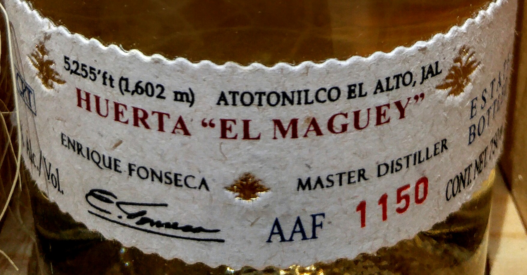 Cosecha highlights the terroir and single field taste of the agaves, grown entirely from a single orchard. This orchard or field is interestingly known as 'El Maguey'. The agaves used here are grown at 5,255 feet of elevation, in Atotonilco El Alto, which is sort of in the Los Altos highlands, but slightly south in an area of it's own, with it's own climate. Enrique Fonseca has said that this area has a good micro climate for the development of agave, and he is happy to present a different side of tequila, other than agave from Amatitan and Los Altos. Fonseca said "I wanted to show tequila drinkers that there are other terroirs in Jalisco besides those two, something in the middle". These agaves are a reflection of the climate, elevation, terroir, weather, etc of this precise area. This terroir is not typical of most Los Altos agaves, and gets protection from a medium-sized mountain, where it is well protected from the cold of Los Altos, giving a temperate climate throughout the year. Another big factor like in grape growing, is that these particular plants were grown on a slope where the water drains downhill, which prevents the vines from flooding during rainy seasons and actually is almost subtropical. Besides his agaves, there are banana and coffee trees growing inside of a canyon nearby. Enrique Fonseca seems to be a man who goes to his own beat. He is known as one of the best masters of blending and aging of extra aged tequilas ever, as well as being known for his amazing agaves. He not only hit a home-run with his first attempt at a Fuenteseca blanco, but a grand slam. Jake Lustig of Haas Brothers, who brings us the amazing ArteNOM lines of quality tequilas, including an Anejo made here at Tequileña NOM 1146, together with Fonseca, came up with this idea. I feel if you are a blanco lover, you need to try this limited edition sipping tequila .... and fast.