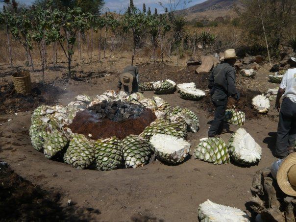 Also in my opinion the next biggest difference is the cooking method (ABOVE). Mezcal itself and other mezcals (except tequila) are actually roasted.... really roasted, not like when tequila brands says roasted. Tequila is not really 'roasted' at all.. it's 'steamed'. Mezcals are roasted in earthen pits, getting that smokey, burnt wood, and sometimes rubbery taste, and despite the similar name, mezcal does not contain mescaline or other psychedelic substances. the rest of the production procedure or Mezcal are similar to Tequila but not identical, and usually more physical labor is involved.