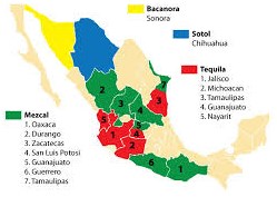 Mezcals originate in Mexico from different States- (SEE ABOVE). Bacanora, Raicilla, Mezcal and Sotol are produced in different areas from Tequila, again with some overlap. Most 'Mezcal' is produced in Oaxaca, south of Jalisco. Mezcal, because of the 'earthen pit' used to cook the agave pinas, produces a smokey flavor that you may have to get used to. Sotol, Bacanora and Raicilla have slight differences over actual 'Mezcal' but trust me .... you know these are more similar to each other, and way less similar to Tequila. Mezcal has a complicated, bolder and rougher flavor profile overall, and is not as smooth as Tequila. Some call Mezcal the "nasty rough cousin of Tequila".