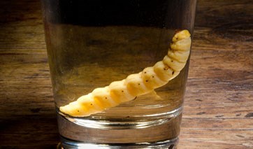 Not all bottles of mezcal contain a "worm", which is actually the larva of a moth (Hypopta agavis) that can infest agave plants. If you see this, it likely was added during the bottling process. Some say it originally was a marketing ploy, while others say that it is there to prove that the mezcal is fit to drink, with the high alcohol level preserving the worm, and only a few say that the larva is there to impart flavor. It appears that usually only cheap, Mezcal has a worm. (BELOW)