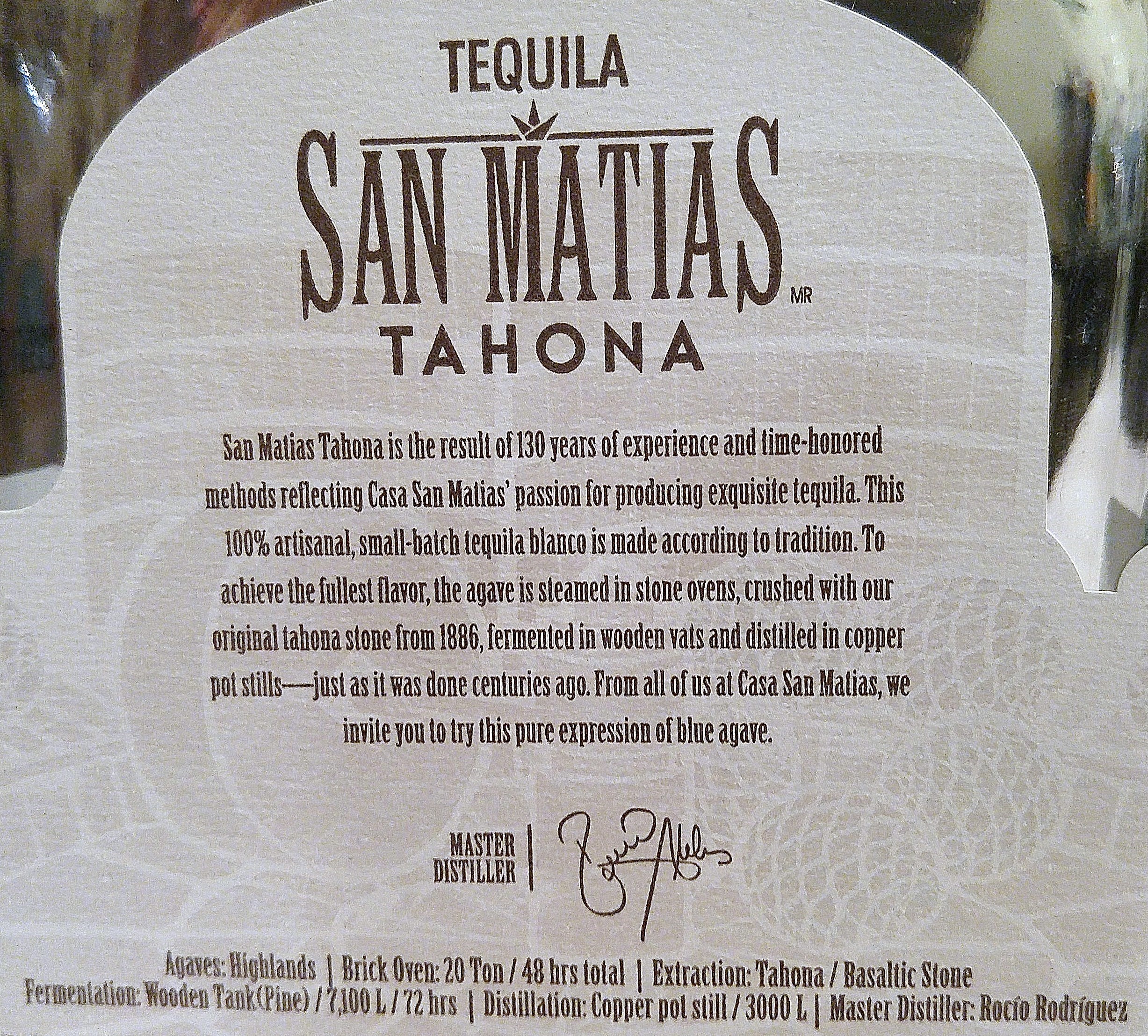 Export Manager Gonzalo Escobar of San Matias explained to me, that Casa San Matias is in the top 5 'biggest distilleries in the Mexican market' with brands like Pueblo Viejo, Rey Sol, Legado, Tequila San Matias Reserva Extra Anejo, and Orgullo Pueblo Viejo. They also make Corazon and Corazon Expresiones for Sazerac, and all brands made at Casa San Matias are owned by San Matias, except Corazon. There are other brands listed in the CRT or Tequila Matchmaker mobile app, but they aren't being made presently. Sazerac is the exclusive importer of San Matias Tahona.