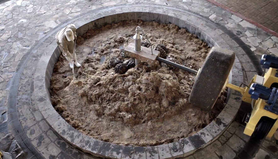 PRODUCTION- Casa San Matías only uses agave which is grown and harvested in the red soil fields of the highlands of Jalisco, after 7 years and up to 10 years. The agave is steamed in stone ovens for 48 hours at 104 degrees, then gently crushed with their original tahona basalt stone wheel from 1886, which is a type of a rock, rich in minerals that will give a unique flavor to the final product. The agave juices extracted retain their sweet, aromatic flavors. Fermentation takes place for 72 hours in pine wood fermentation vats, using native yeast from the region, which gets mixed freely through the air, and distilled twice slowly at very low temperature in copper pot stills, and bottled unaged. This procedure would make a connoisseur drool, as it can't get much better than this.