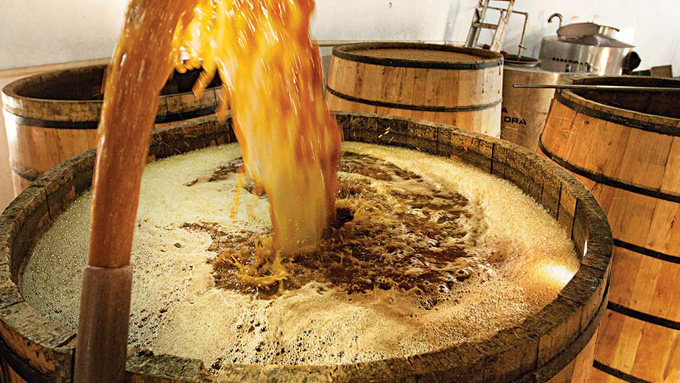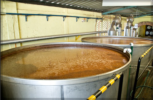 After fermentation the wort (juice) has a low alcohol level of about 4% and not normally higher than 7%, so it's like beer. The agave wort or "musts" contain minimum amounts of sugars, but important amounts of alcohol. Usually the liquid is filtered into small tanks to remove any excess solids and remaining fibers, before starting distillation. After the fermentation, dead mosto contains more than 100 compounds.