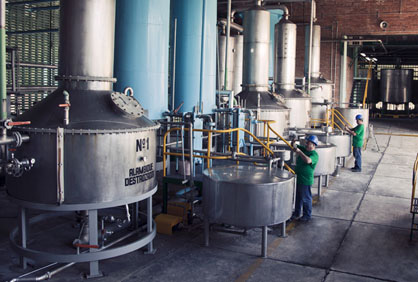 Distillation in simple terms, is basically the process of separating a liquid or vapor mixture into it's component parts, through vaporization and condensation. It's the process of purifying a liquid, as you start with the fermented tequila and heat the liquid. Since alcohol boils at a lower temperature than water, it will turn to steam before the water does, and rise up in the still. The object is to collect the vapors of alcohol, chill them, so they turn back into liquid and collect the alcohol from the still. Tequila is doubled distilled at minimum, by regulations. The first distillation is called 'Ordinario', and after the second distillation the liquid is called 'Tequila'. The idea is to separate and purify the fermented "musts" to eliminate any undesired elements, and doing so is called 'cutting heads and tails'. Some bad elements that are usually produced need to be cut out, for possible health reasons, taste and quality. All of these components are very important to the smell and taste of the tequila. At 83°C these and other components start to vaporize. Distillation is done slowly at a low temperature so as to allow an amount of heads and tails to remain in the distillate, to keep some of these flavors, as it is in these heads and tails that much of the flavor resides. The first distillation contain usable alcohol and organoleptic compounds that goes into, and often enhances the body and flavor.