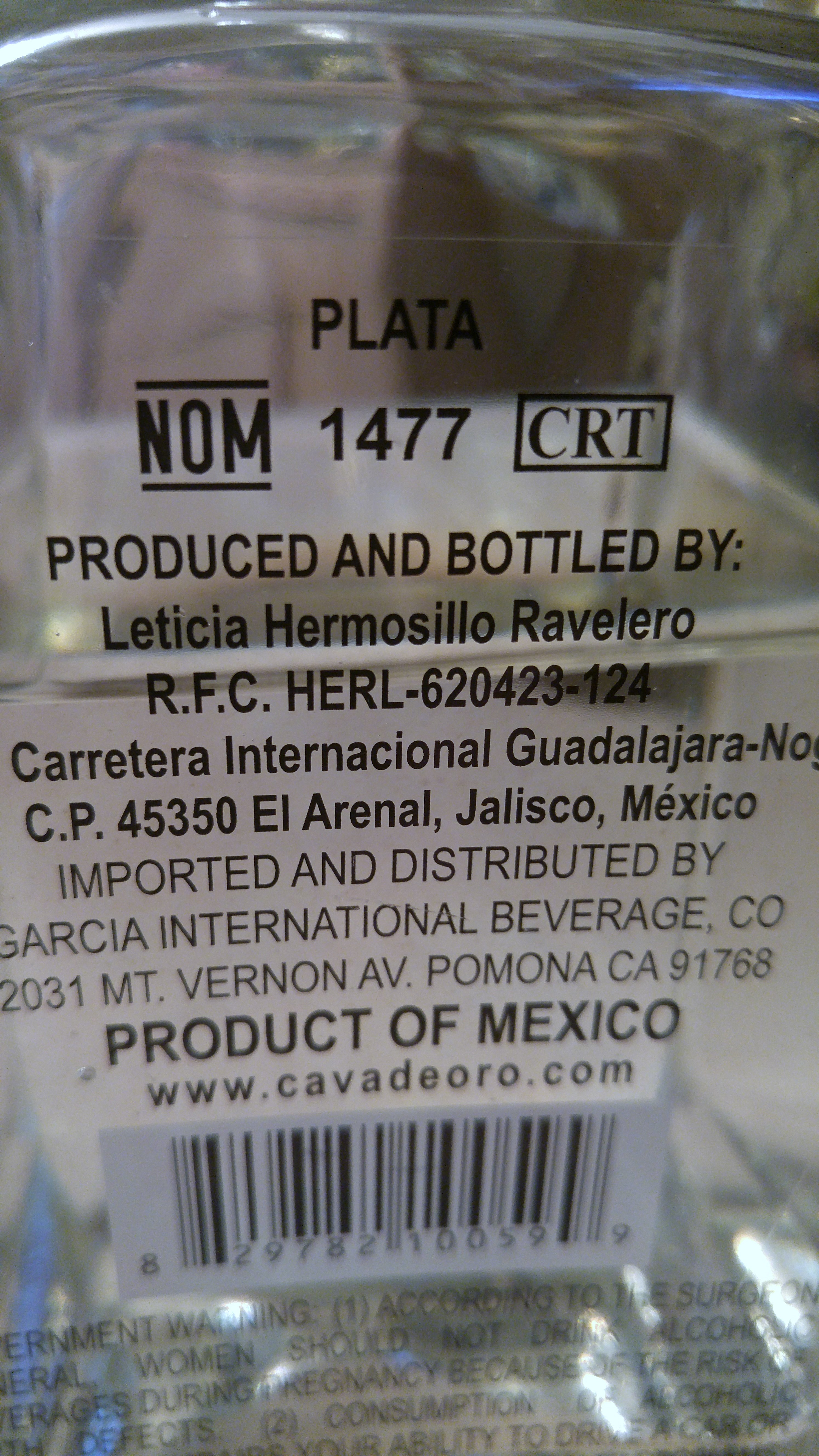Produced and bottled at Leticia Hermosillo Ravelero- in El Arenal, in the El Valle (lowlands) of Jalisco- Nom 1477. The distillery name is listed as being called Compania Tequilera Puerta de Hierro, although it doesn't say so on my bottle. They must have changed some things recently with the bottle and tequila naming. I see confusing information out there with bottles, some saying Gran in the name, and others not, and some saying blanco, while others say plata. It doesn't matter much to me, all I'm saying is if you see this bottle or another that you feel is a newer or older bottle of this same juice, you may want to run in the other direction, or spend your money on other, better tasting blancos available. Gildardo Partida Melendrez is brand owner and comes from a family of three generations of tequila producers. They mix mature Los Altos (highland) and El Valle (lowland) agaves, looking for the sweetest plants. They are 'inspected and hand-picked' by experienced agave specialists.